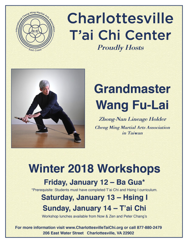 The Charlottesville T’ai Chi Center is very proud to once again host Grandmaster Wang Fu-Lai for a weekend of T’ai Chi and Hsing-I seminars!