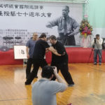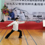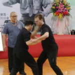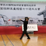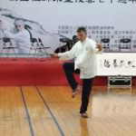 The performance space was then set up for demonstrations. First there was a Push Hands demonstration by the Texas Cheng Ming School, which included three different matches. Eric and James from the Texas school then demonstrated sparring with applications. Next the leaders of all the schools demonstrated several advanced forms. There were staff, sword, saber, and spear demos. Master Hiromi demonstrated a beautiful Ba Gua sword form. It was both humbling and inspiring to see these masters move.