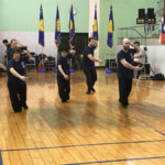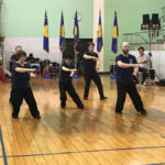 We took a break for lunch, and then the floor was set up for the group demonstrations. The group T’ai Chi competition was first. Our school was actually selected to go first and we felt good about how we did. It was really interesting to watch all the other schools demonstrate their T’ai Chi forms. It was obvious that there was a lot of expertise at each one of the schools in all the demonstrations. The next category was the Five Elements form. We again took our place and marched out for our demonstration which went fine. The final category was the animal forms. There were four schools that had entered this category and we were third. We were both happy with how we did and also relieved to be done.